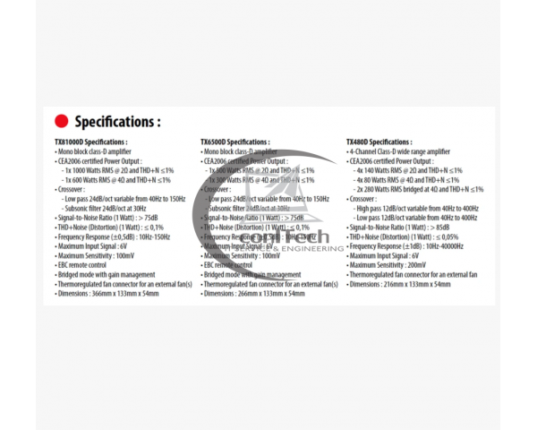 Puterea RMS: 1x 500W @ 2Ω, THD + N ≤1%